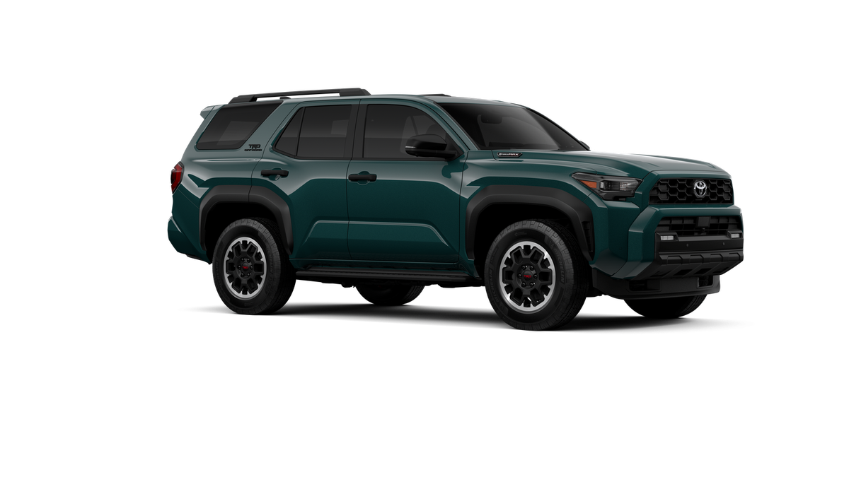 - Black honeycomb-style grille, mirror caps, door handles and overfenders; color-keyed rear spoiler; black "TRD OFF ROAD" and "4RUNNER" badges