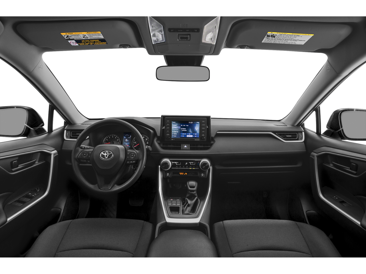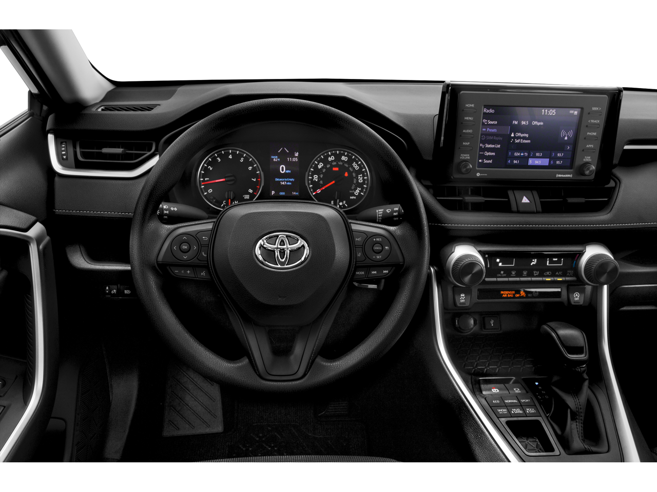 Equipped with Black w/SofTex Seat Trim, 17 Steel Wheels, 4-Wheel Disc Brakes, 6 Speakers, ABS brakes, Air Conditioning, AM/FM radio: SiriusXM, AM/FM Stereo, Apple CarPlay/Android Auto, Auto High-beam Headlights, Axle Ratio: 3.177, Brake assist, Bumpers: body-color, Driver door bin, Driver vanity mirror, Dual front impact airbags, Dual front side impact airbags, Electronic Stability Control, Emergency communication system: Entune Safety Connect, Exterior Parking Camera Rear, Fabric Seat Trim, Four wheel independent suspension, Front anti-roll bar, Front Bucket Seats, Front Center Armrest, Front reading lights, Illuminated entry, Knee airbag, Low tire pressure warning, Occupant sensing airbag, Outside temperature display, Overhead airbag, Overhead console, Panic alarm, Passenger door bin, Passenger vanity mirror, Power door mirrors, Power steering, Power windows, Radio data system, Rear anti-roll bar, Rear seat center armrest, Rear window defroster, Rear window wiper, Remote keyless entry, Roof rack: rails only, Speed control, Speed-sensing steering, Split folding rear seat, Spoiler, Steering wheel mounted audio controls, Tachometer, Telescoping steering wheel, Tilt steering wheel, Traction control, and Trip computer.