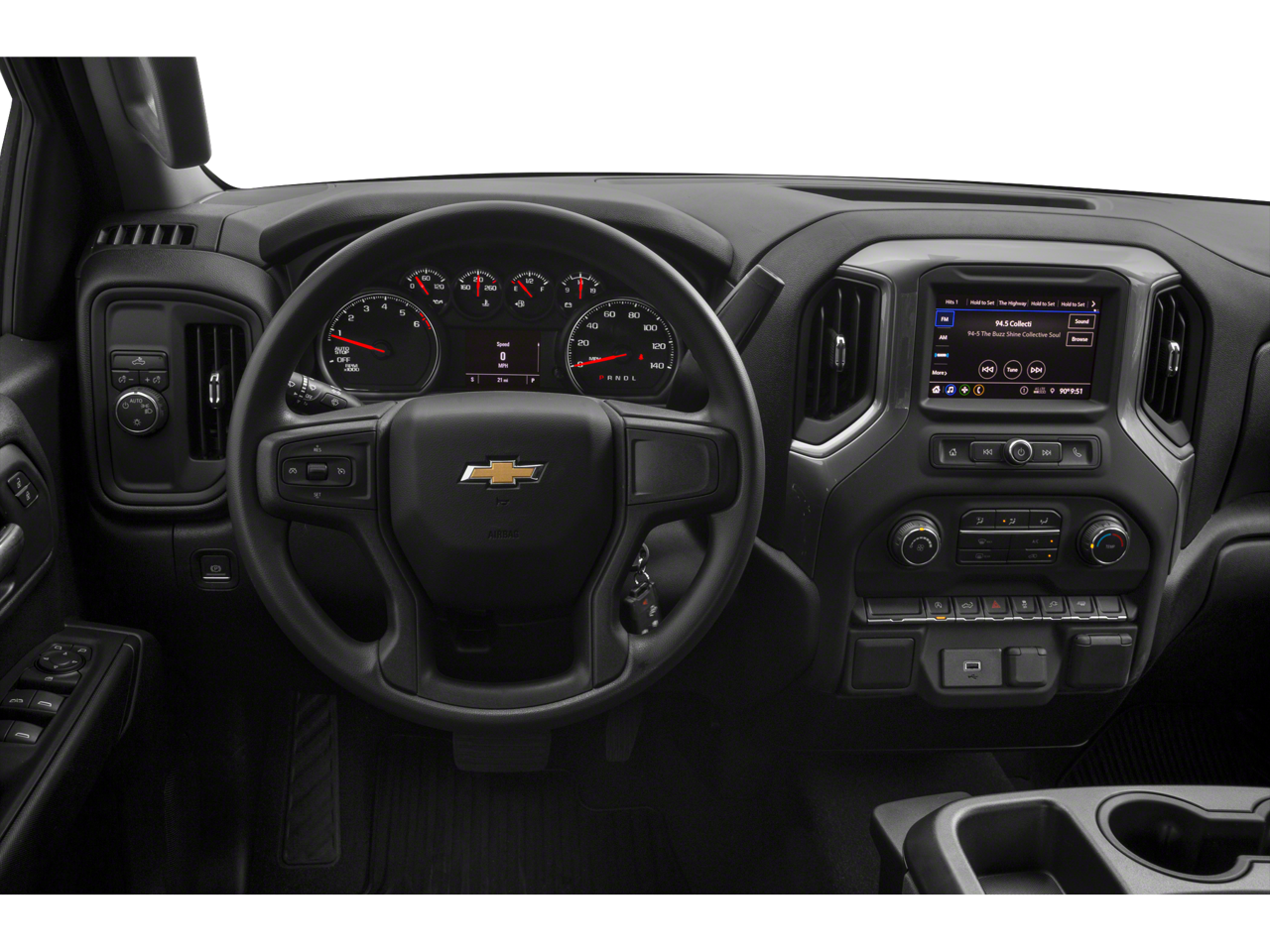 Equipped with Custom Convenience Package (Electric Rear-Window Defogger, EZ Lift Power Lock & Release Tailgate, LED Cargo Area Lighting, Remote Vehicle Starter System, and Theft Deterrent System (Unauthorized Entry)), Custom Value Package, Infotainment Package (Chevrolet Connected Access Capable, OnStar & Chevrolet Connected Services Capable, SiriusXM Radio, and Wi-Fi Hot Spot Capable), Preferred Equipment Group 1CX (3.5 Monochromatic Display Driver Info Center, Bluetooth® For Phone, Body Color Grille, Color-Keyed Carpeting Floor Covering, Compass, Deep-Tinted Glass, Electronic Cruise Control, Front Frame-Mounted Black Recovery Hooks, Front Rubberized Vinyl Floor Mats, Manual Tilt Wheel Steering Column, Power Door Locks, Power Front Windows w/Driver Express Up/Down, Power Front Windows w/Passenger Express Down, Power Rear Windows w/Express Down, Rear 60/40 Folding Bench Seat (Folds Up), Rear Rubberized-Vinyl Floor Mats, Remote Keyless Entry, and Standard Tailgate), Trailering Package (Hitch Guidance), 10-Way Power Driver Seat w/Lumbar, 120-Volt Bed Mounted Power Outlet, 120-Volt Instrument Panel Power Outlet, 3.42 Rear Axle Ratio, 4-Wheel Disc Brakes, 40/20/40 Front Split Bench Seat, 6 Speakers, 6-Speaker Audio System, ABS brakes, Air Conditioning, Alloy wheels, AM/FM radio: SiriusXM, Apple CarPlay/Android Auto, Brake assist, Bumpers: body-color, Cloth Seat Trim, Delay-off headlights, Driver door bin, Driver vanity mirror, Dual front impact airbags, Dual front side impact airbags, Electronic Stability Control, Front anti-roll bar, Front Center Armrest w/Storage, Front License Plate Kit, Front reading lights, Front wheel independent suspension, Fully automatic headlights, Heated door mirrors, Heavy Duty Suspension, Illuminated entry, Low tire pressure warning, Occupant sensing airbag, Outside temperature display, Overhead airbag, Overhead console, Panic alarm, Passenger door bin, Passenger vanity mirror, Power door mirrors, Power steering, Power windows, Premium audio system: Chevrolet Infotainment 3, Radio data system, Radio: Chevrolet Infotainment 3 System, Rear reading lights, Rear step bumper, Rear window defroster, Remote keyless entry, Security system, Speed control, Speed-sensing steering, Split folding rear seat, Tachometer, Tilt steering wheel, Traction control, Trip computer, Variably intermittent wipers, Voltmeter, and Wheels: 20 x 9 Bright Silver Painted Aluminum.