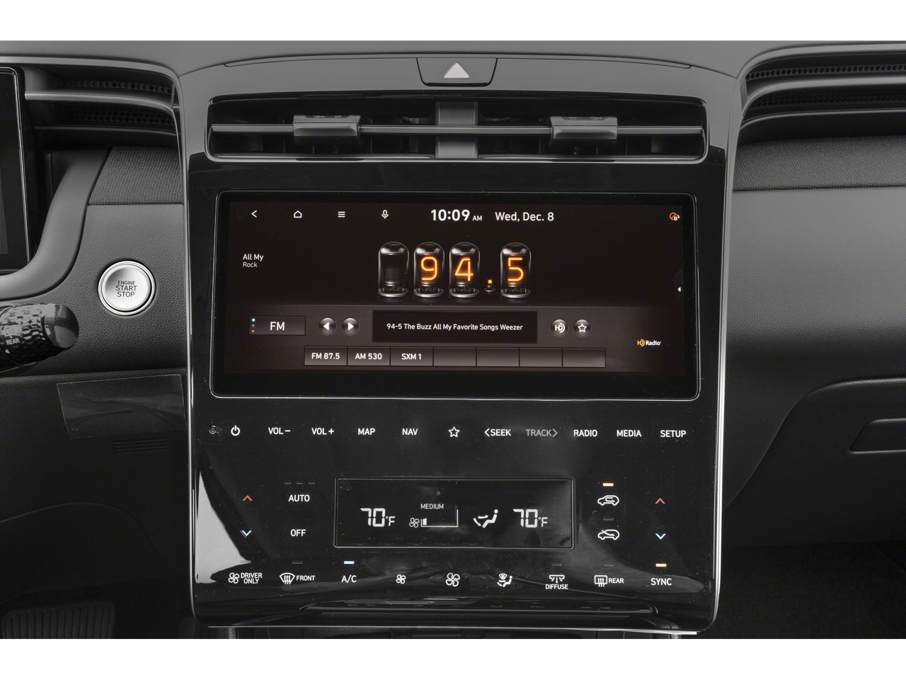 - Radio: Bose Premium w/AM/FM/HD/SiriusXM Audio System -inc: 10.25" color touchscreen w/onboard navigation and traffic flow including incident data via HD Radio (HERE) (AVN 5.0), 8 speakers (1 twiddler on center of instrument panel, 2 tweeters, 2 front door, 2 rear door, 1 woofer on rear quarter panel), digital 8 channel amp w/custom equalization, digital signal processing and dynamic speed compensation, Bluelink connected car system, Bluetooth® w/voice recognition, wired Apple CarPlay and Android Auto and USB connectivity