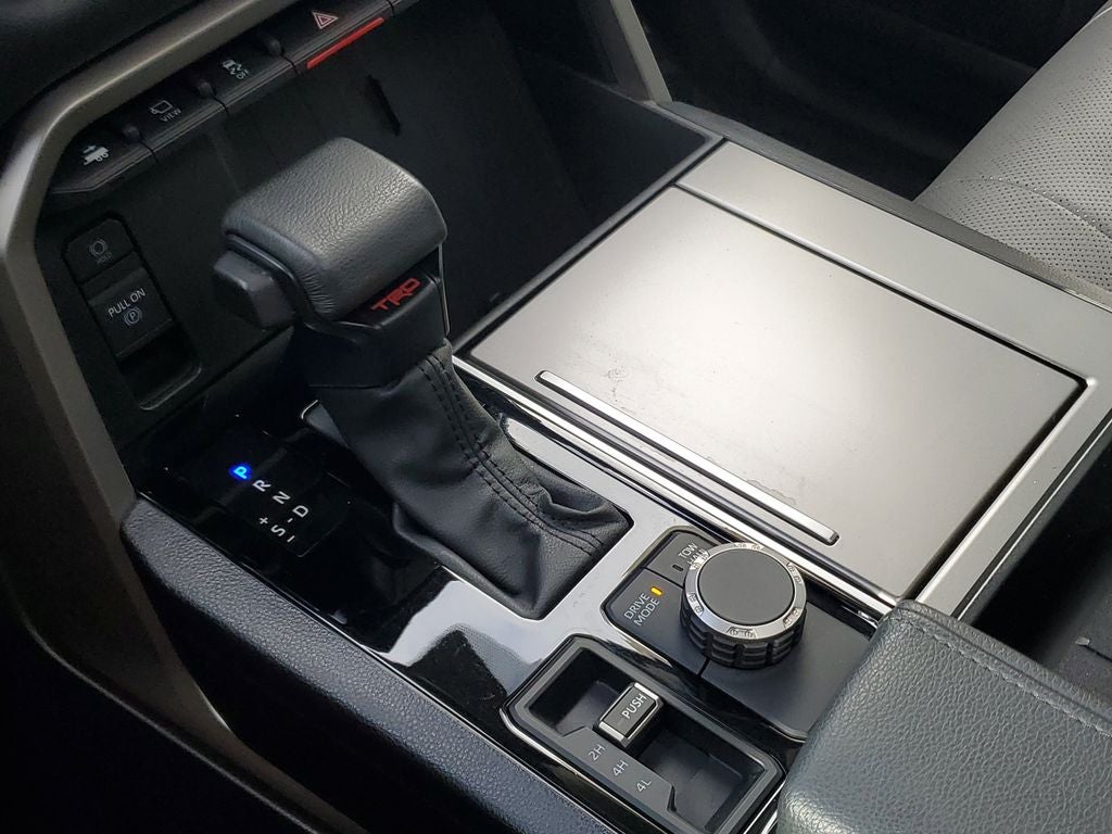 Equipped with SR5 Premium Package (400W/120V AC Rear Seat & Cargo Area Power Outlet, Radio: Toyota Multimedia w/14 Display, and SofTex Seat Trim), TRD Sport Package (Wheels: 20 TRD Sport Matte-Black Alloy), Toyota Gold Certified Certified, V6 Hybrid, 10-Speed Automatic, 4WD, ABS brakes, Active Cruise Control, Alloy wheels, Electronic Stability Control, Front dual zone A/C, Heated door mirrors, Heated Front Seats, Heated front seats, Illuminated entry, Low tire pressure warning, Power moonroof, Remote keyless entry, Traction control, 3.31 Axle Ratio, 3rd row seats: split-bench, 4-Wheel Disc Brakes, 8 Speakers, Air Conditioning, AM/FM radio: SiriusXM, Anti-whiplash front head restraints, Apple CarPlay/Android Auto, Auto High-beam Headlights, Auto-dimming door mirrors, Auto-dimming Rear-View mirror, Automatic temperature control, Brake assist, Bumpers: body-color, Delay-off headlights, Driver door bin, Driver vanity mirror, Dual front impact airbags, Dual front side impact airbags, Emergency communication system: Safety Connect (10-year trial), Exterior Parking Camera Rear, Fabric Seat Trim, Front anti-roll bar, Front Bucket Seats, Front Center Armrest w/Storage, Front fog lights, Front reading lights, Front wheel independent suspension, Fully automatic headlights, Garage door transmitter, Headlight cleaning, Knee airbag, Leather Shift Knob, Leather steering wheel, Occupant sensing airbag, Outside temperature display, Overhead airbag, Overhead console, Panic alarm, Passenger door bin, Passenger vanity mirror, Power door mirrors, Power driver seat, Power passenger seat, Power steering, Power windows, Radio: Toyota Multimedia w/8 Display, Rear air conditioning, Rear reading lights, Rear seat center armrest, Rear window defroster, Rear window wiper, Reclining 3rd row seat, Security system, Speed control, Speed-sensing steering, Split folding rear seat, Spoiler, Steering wheel mounted audio controls, Tachometer, Telescoping steering wheel, Tilt steering wheel, Trip computer, Turn signal indicator mirrors, Variably intermittent wipers, Voltmeter, and Wheels: 18 Styled-Alloy.