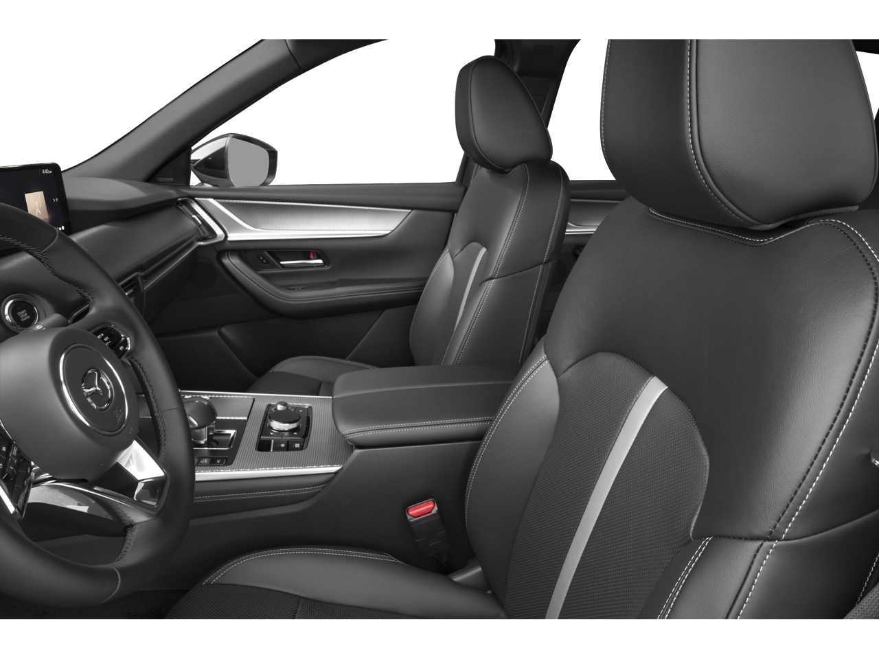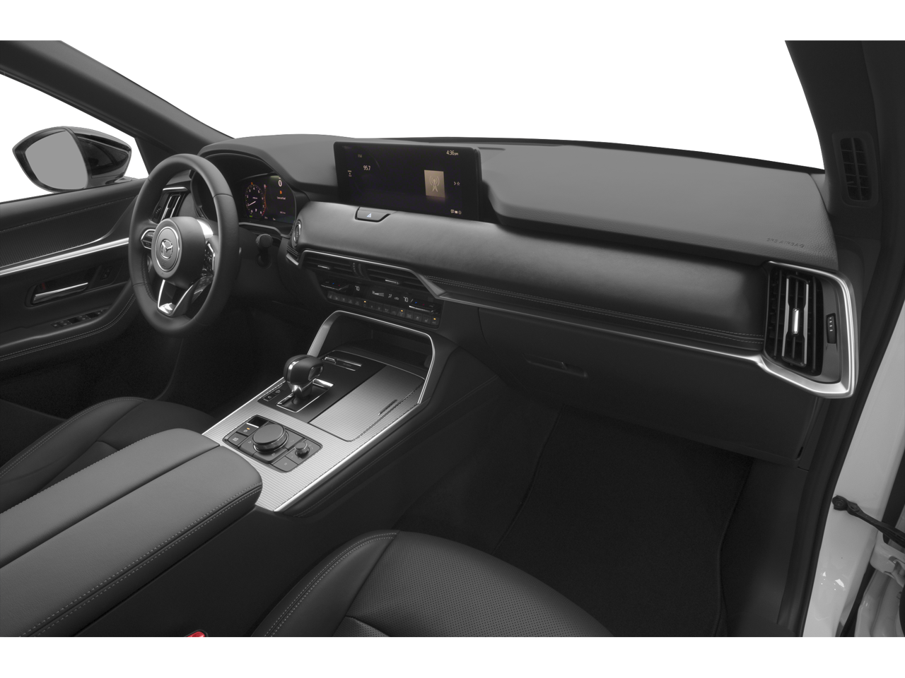 Equipped with Navigation system: MAZDA CONNECT, 12 Speakers, 4-Wheel Disc Brakes, ABS brakes, Air Conditioning, Alloy wheels, AM/FM radio: SiriusXM, Auto High-beam Headlights, Auto-dimming door mirrors, Auto-dimming Rear-View mirror, Automatic temperature control, Brake assist, Bumpers: body-color, Compass, Delay-off headlights, Driver door bin, Driver vanity mirror, Dual front impact airbags, Dual front side impact airbags, E911 Automatic Emergency Notification, Electronic Stability Control, Emergency communication system: MAZDA CONNECT, Four wheel independent suspension, Front anti-roll bar, Front Bucket Seats, Front Center Armrest w/Storage, Front dual zone A/C, Front reading lights, Fully automatic headlights, Garage door transmitter: HomeLink, Heads-Up Display, Heated door mirrors, Heated front seats, Heated rear seats, Heated steering wheel, Heated/Ventilated Front Bucket Seats, Illuminated entry, Infotainment System Voice Command, Knee airbag, Leather Shift Knob, Leather steering wheel, Low tire pressure warning, Mazda Connected Services, Mazda Online Navigation, Memory seat, Nappa Leather Seat Trim, Occupant sensing airbag, Outside temperature display, Overhead airbag, Overhead console, Pandora Internet Radio Integration, Panic alarm, Passenger door bin, Passenger vanity mirror, Power door mirrors, Power driver seat, Power Liftgate, Power moonroof, Power passenger seat, Power steering, Power windows, Radio Broadcast Data System Program Information, Radio data system, Radio: AM/FM w/Bose Premium Audio Sound System, Rain sensing wipers, Rear air conditioning, Rear anti-roll bar, Rear reading lights, Rear seat center armrest, Rear window defroster, Rear window wiper, Remote keyless entry, Security system, SMS Text Msg Audio Delivery & Reply, Soul Red Crystal Metallic Paint Charge, Speed control, Speed-sensing steering, Split folding rear seat, Spoiler, Steering wheel mounted audio controls, Tachometer, Telescoping steering wheel, Tilt steering wheel, Traction control, Trip computer, Turn signal indicator mirrors, Variably intermittent wipers, Ventilated front seats, and Wheels: 21 x 9.5J Aluminum Alloy.