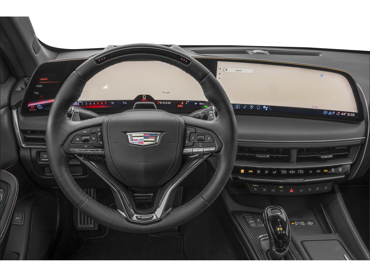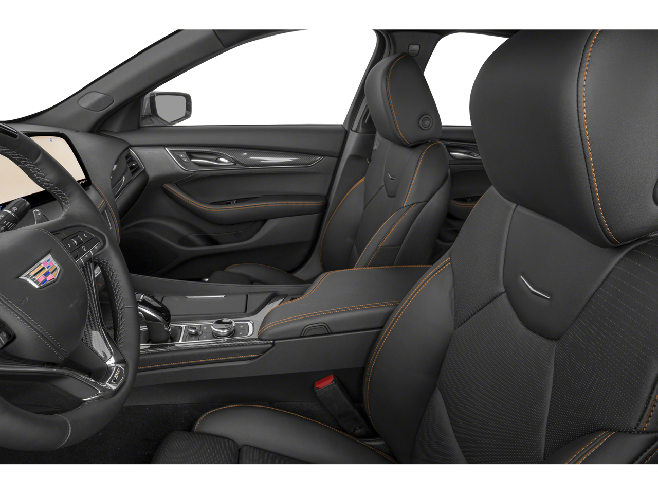 Equipped with Preferred Equipment Group 1SV (3.73 Rear Axle Ratio, Brembo 4-Wheel Antilock High-Performance Brakes, Electronic Cruise Control w/Set & Resume Speed, High Performance Steering Wheel, Inside Rear-View Auto-Dimming Mirror, and Leather-Wrapped Thick Rim Steering Wheel), 16 Speakers, 4-Wheel Disc Brakes, 8-Way Power Driver Seat Adjuster, 8-Way Power Front Passenger Seat Adjuster, ABS brakes, Adaptive suspension, Air Conditioning, AKG Premium 16-Speaker System, Alloy wheels, AM/FM radio: SiriusXM with 360L, Apple CarPlay/Android Auto, Auto-dimming door mirrors, Auto-dimming Rear-View mirror, Automatic temperature control, Brake assist, Bumpers: body-color, Compass, Delay-off headlights, Driver 4-Way Power Lumbar Seat Adjuster, Driver door bin, Driver Power Lumbar Massage Seat, Driver vanity mirror, Dual front impact airbags, Dual front side impact airbags, Electronic Stability Control, Emergency communication system: OnStar and Cadillac connected services capable, Exterior Parking Camera Rear, Four wheel independent suspension, Front 2-Way Adjustable Head Restraints, Front anti-roll bar, Front Bucket Seats, Front Center Armrest, Front dual zone A/C, Front License Plate Bracket, Front Passenger 4-Way Power Lumbar Seat Adjuster, Front Passenger Power Lumbar Massage Seat, Front reading lights, Fully automatic headlights, Garage door transmitter, Heads-Up Display, Heated door mirrors, Heated Driver & Front Passenger Seats, Heated front seats, Heated steering wheel, Illuminated entry, Knee airbag, Leather Seating Surfaces w/Mini-Perforated Inserts, Leather steering wheel, Low tire pressure warning, Memory seat, Navigation system: Google Automotive Services Capable, Occupant sensing airbag, Outside temperature display, Overhead airbag, Overhead console, Panic alarm, Passenger door bin, Passenger vanity mirror, Performance Front Bucket Seats, Power door mirrors, Power driver seat, Power passenger seat, Power steering, Power windows, Radio data system, Radio: Google Built-In Infotainment Experience, Rain sensing wipers, Rear anti-roll bar, Rear reading lights, Rear seat center armrest, Rear window defroster, Remote keyless entry, Security system, SiriusXM w/360L Trial Subscription, Speed control, Speed-sensing steering, Split folding rear seat, Spoiler, Sport steering wheel, Steering wheel memory, Steering wheel mounted audio controls, Tachometer, Telescoping steering wheel, Tilt steering wheel, Tire Inflator Kit, Traction control, Trip computer, Turn signal indicator mirrors, UltraView Dual Pane Sunroof, Variably intermittent wipers, Ventilated Driver & Front Passenger Seats, Ventilated front seats, Voltmeter, and Wheels: 19 Alum Alloy w/Polished/Dk Android Finish. Awards: