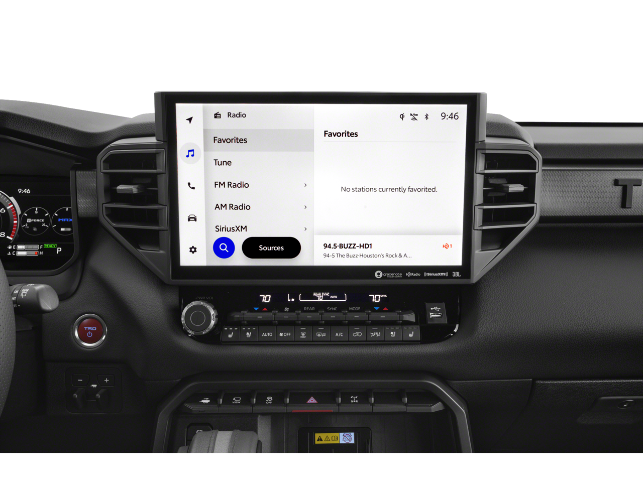 Equipped with TRD Pro Package, Toyota Gold Certified Certified, V6 Hybrid, 10-Speed Automatic, 4WD, ABS brakes, Active Cruise Control, Alloy wheels, Compass, Electronic Stability Control, Front dual zone A/C, Heated & Ventilated Front Seats, Heated door mirrors, Heated front seats, Illuminated entry, Low tire pressure warning, Navigation System, Power Liftgate, Power moonroof, Remote keyless entry, Traction control, 14 Speakers, 3rd row seats: split-bench, 4-Wheel Disc Brakes, Air Conditioning, AM/FM radio: SiriusXM, Anti-whiplash front head restraints, Apple CarPlay/Android Auto, Auto High-beam Headlights, Auto-dimming door mirrors, Auto-dimming Rear-View mirror, Automatic temperature control, Brake assist, Bumpers: body-color, Delay-off headlights, Driver door bin, Driver vanity mirror, Dual front impact airbags, Dual front side impact airbags, Emergency communication system: Safety Connect (10-year trial), Exterior Parking Camera Rear, Front anti-roll bar, Front Bucket Seats, Front Center Armrest w/Storage, Front fog lights, Front reading lights, Front wheel independent suspension, Fully automatic headlights, Garage door transmitter: HomeLink, Headlight cleaning, Heated steering wheel, Knee airbag, Leather Shift Knob, Leather steering wheel, Memory seat, Navigation system: Drive Connect (1 year trial) includes Cloud Navigation with real time traffic and Google POI, Occupant sensing airbag, Outside temperature display, Overhead airbag, Overhead console, Panic alarm, Passenger door bin, Passenger vanity mirror, Power door mirrors, Power driver seat, Power passenger seat, Power steering, Power windows, Premium audio system: JBL, Radio: 14 Toyota Audio Multimedia w/JBL Prem Aud, Rear air conditioning, Rear reading lights, Rear seat center armrest, Rear window defroster, Rear window wiper, Reclining 3rd row seat, Security system, Speed control, Speed-sensing steering, Split folding rear seat, Spoiler, Sport steering wheel, Steering wheel mounted audio controls, Tachometer, Telescoping steering wheel, Tilt steering wheel, TRD Pro SofTex Seat Trim, Trip computer, Turn signal indicator mirrors, Variably intermittent wipers, Ventilated front seats, Voltmeter, and Wheels: 18 TRD Pro Forged-Aluminum BBS.